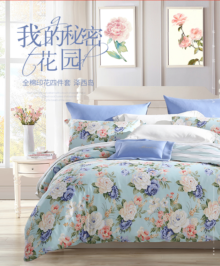 商品名称:梦洁家纺MEE 床上用品 纯棉印花四件套 全棉床单被套 泽西岛 1.8米床 220*240cm